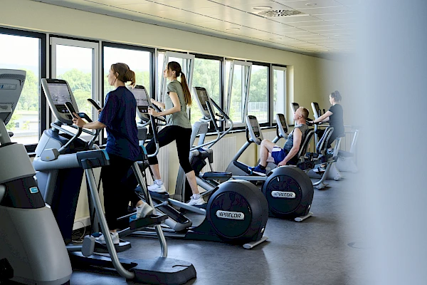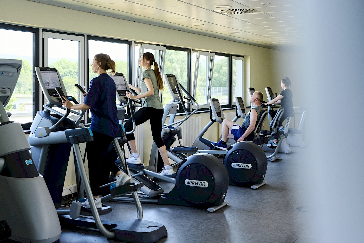 - Umfangreicher Cardio-Bereich: Fahrrad-Ergometer, Crosstrainer, Laufbänder, Rudergeräte und mehr